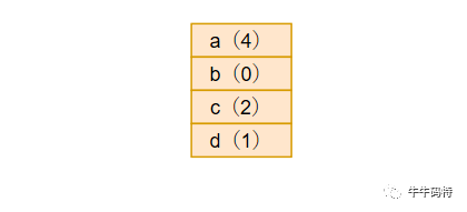 假设用一个长度为4的数组来实现这个结构,按照插入到数组的顺序,数组元素分别为a、b、c、d。